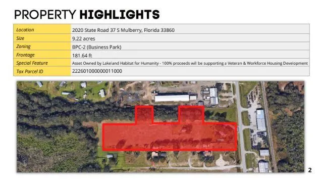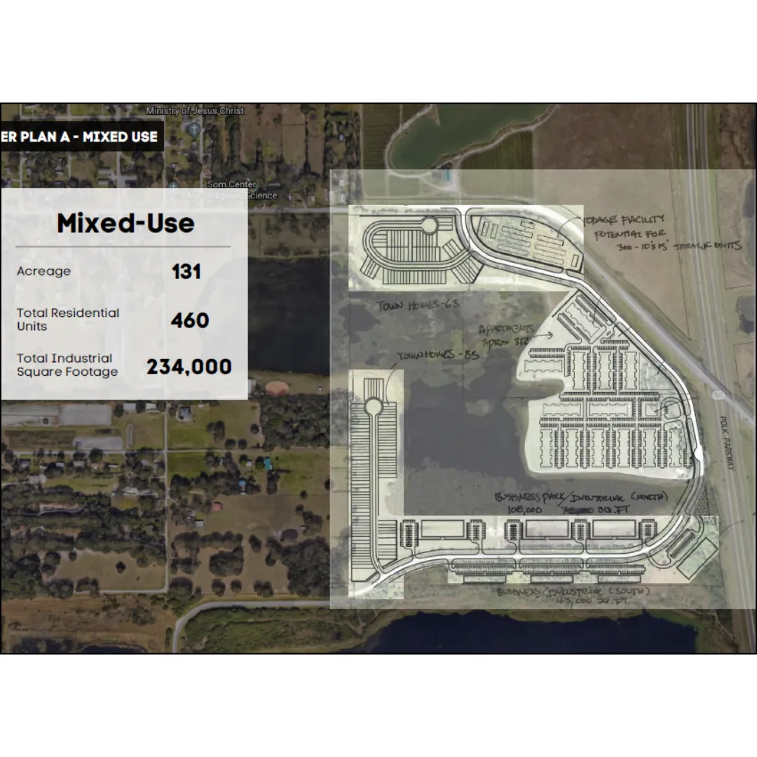 131-acre parcel with direct Polk Parkway access, prime for large-scale development.
