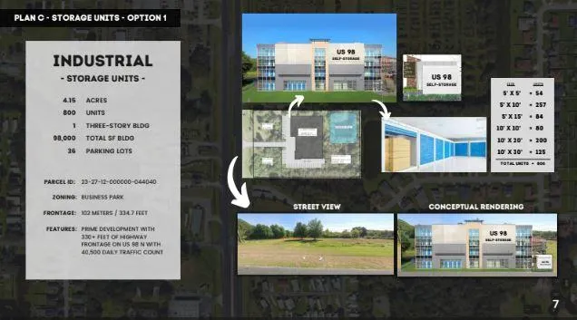 Plan C: Mixed-use self-storage and business park.