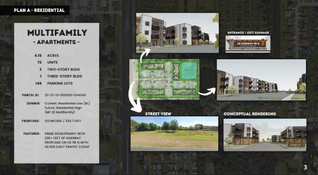 Entitlements include medium- and high-density residential, light industrial, and vehicle storage overlays.