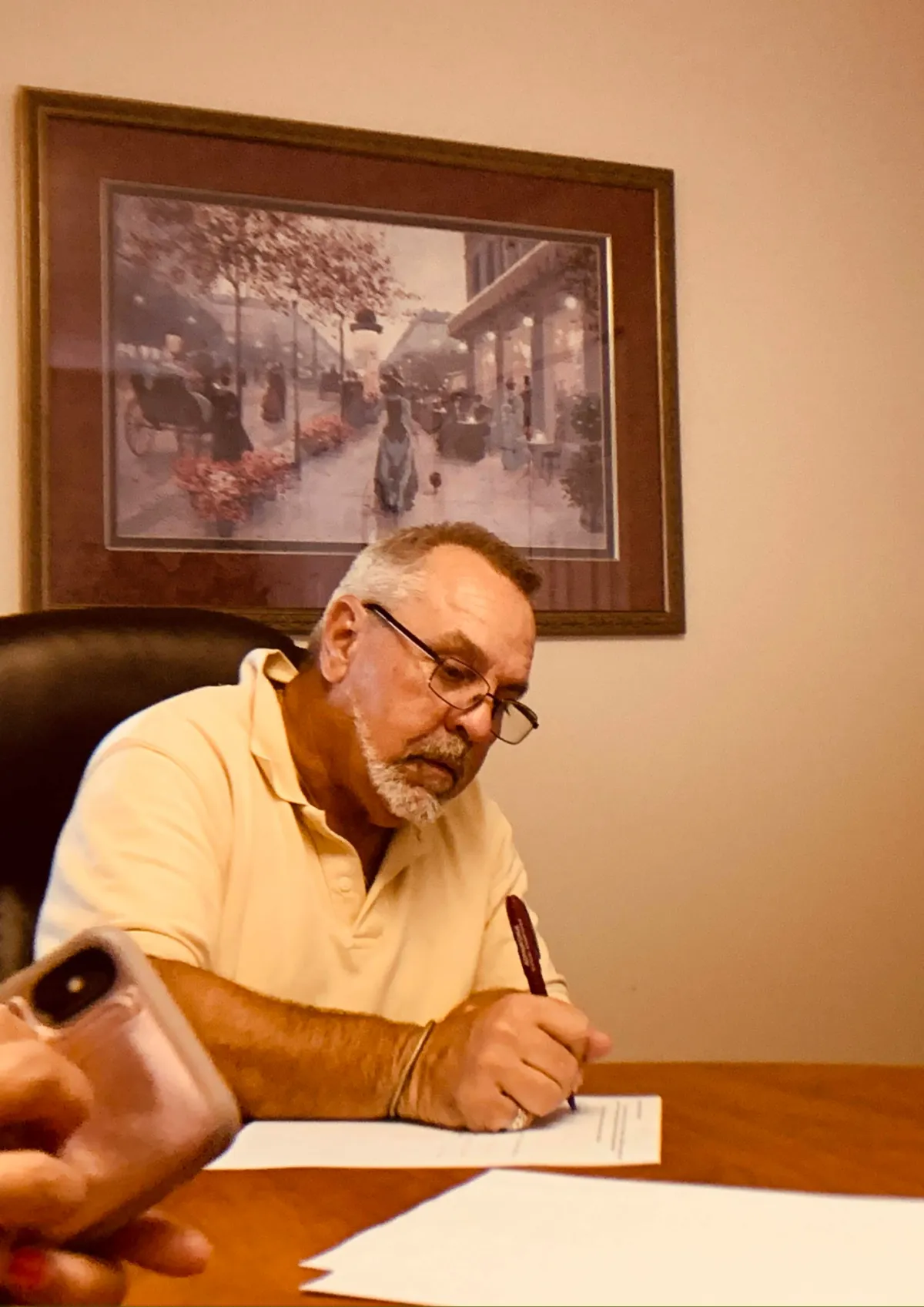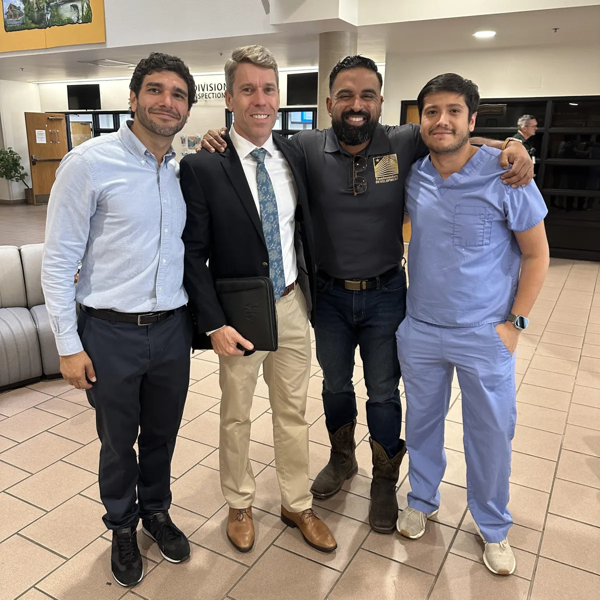 Dr. Mateo (client), civil engineer, and land planner collaborating on the vision.