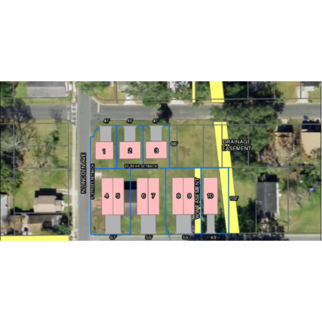 The property across from our Butterfly Roof project. Initially mapped for 11 lots.
