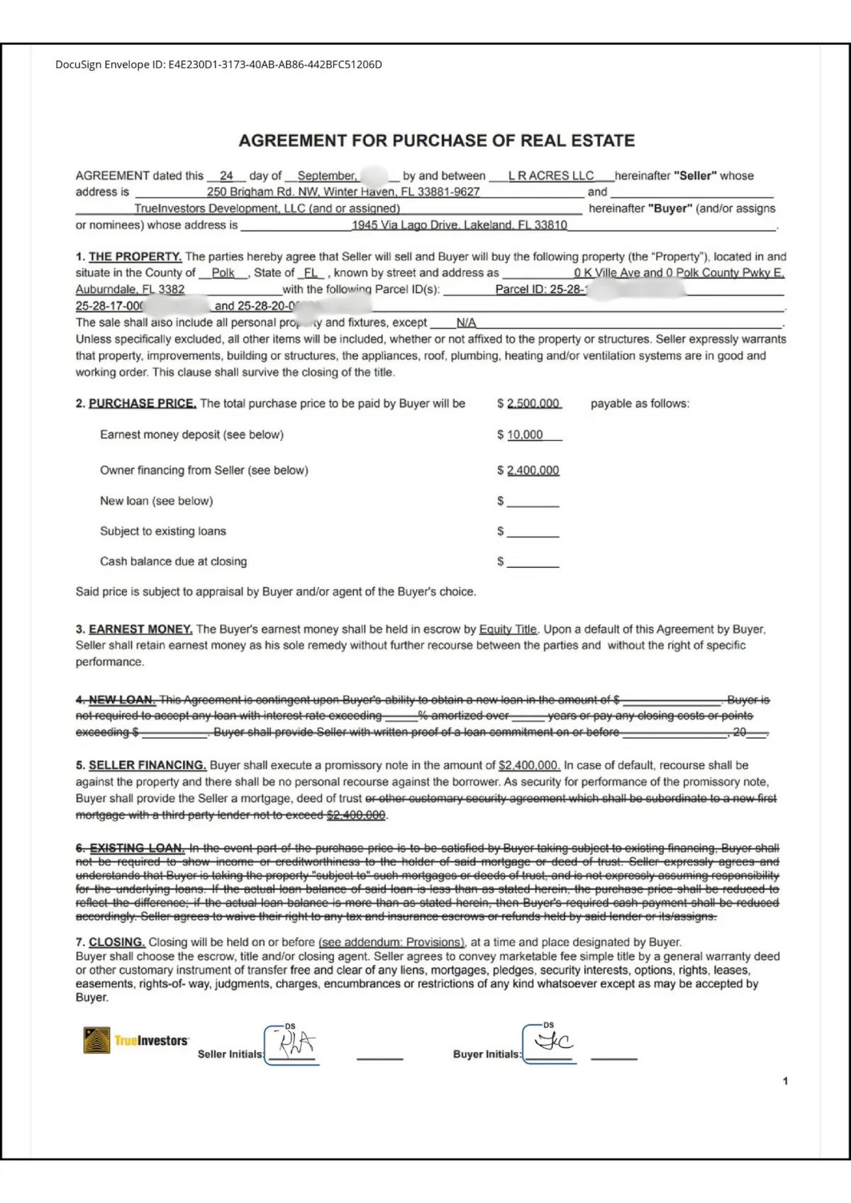Completed assemblage: 7 total parcels, creating 63.4 contiguous acres.