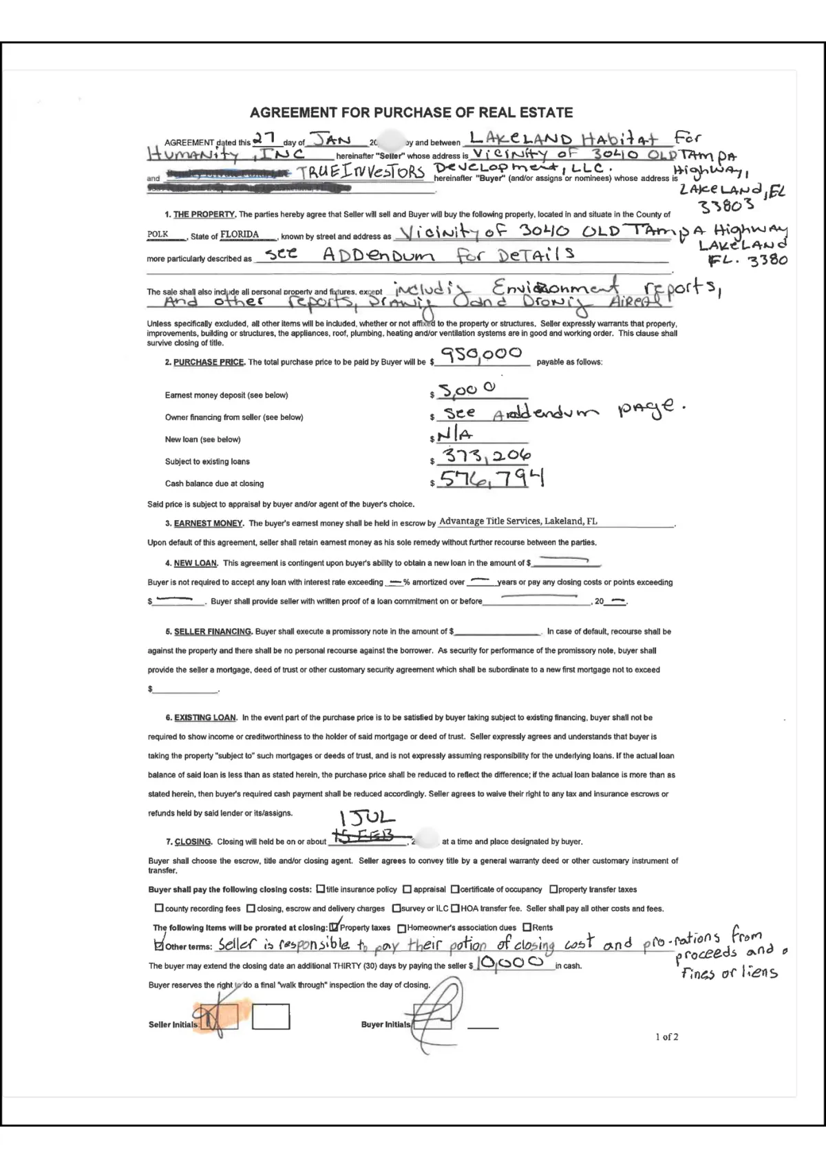 Initial purchase: 22 acres from Habitat for Humanity.